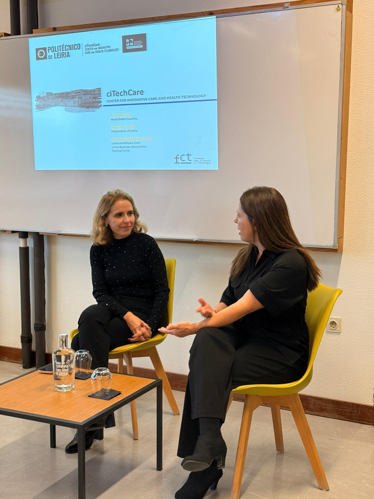 On November 25, Liliana Sousa, President of the Order of Nutritionists (ON), attended ciTechCare to meet some of the researchers, research fellows, and scientific and innovative projects currently underway in the fields of nutrition and health promotion. The visit began with a presentation of the Health Innovation Hub of the Polytechnic of Leiria, as well as its laboratories where the various ongoing projects take place, conducted by the coordinator, Maria Guarino. The main part of the visit occurred in the Hub’s auditorium, where several researchers, research fellows and students presented the projects they are involved in, in a session that