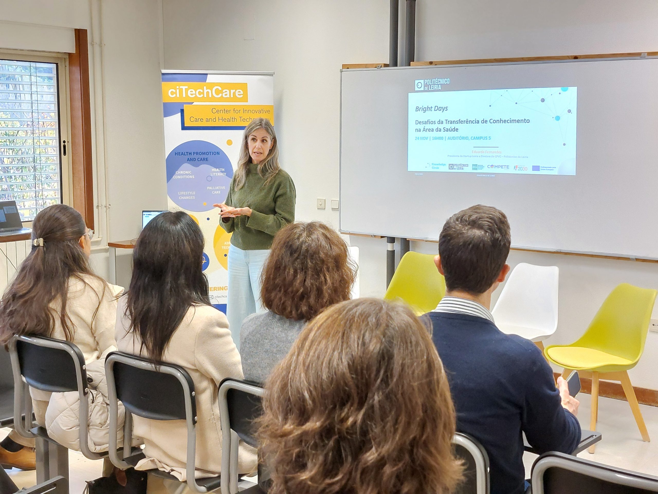 The main goal of the session “Challenges of Knowledge Transfer in the Health Area” was to promote an open and direct discussion on how research carried out in higher education can reach people more effectively and create real impact. The session was led by Eduarda Fernandes, President of Startup Leiria and Director of the Knowledge Sharing and Valorization Center at the Polytechnic of Leiria.